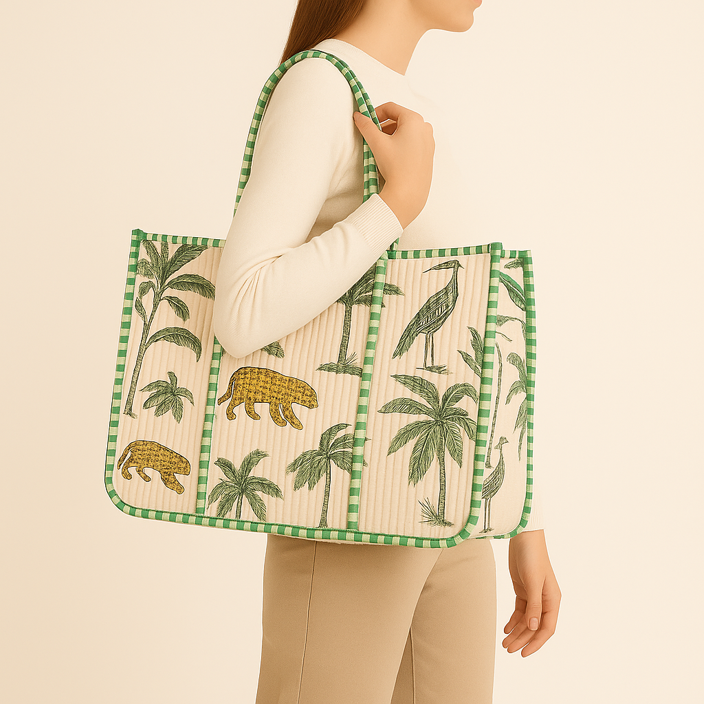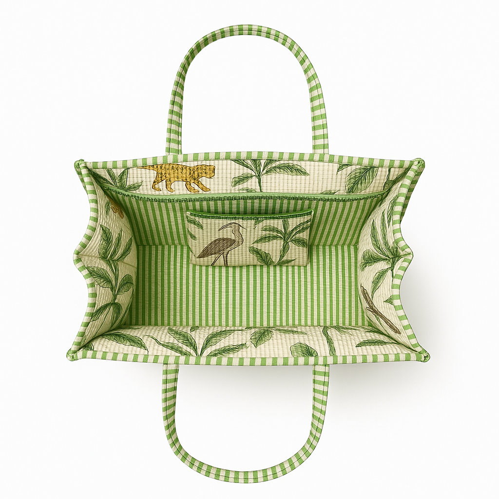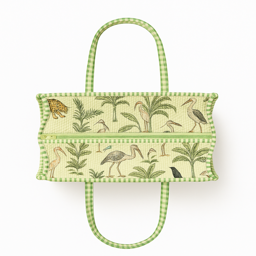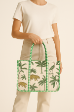Svieža kombinácia bielej a zelenej s jemným safari motívom – ideálna na bezstarostné dni.